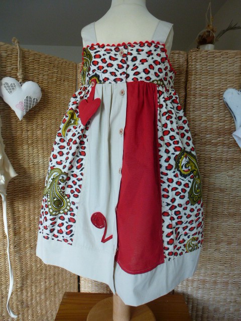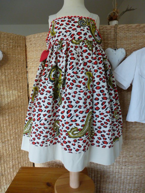 ROBE BEIGE A MOTIFS ROUGES